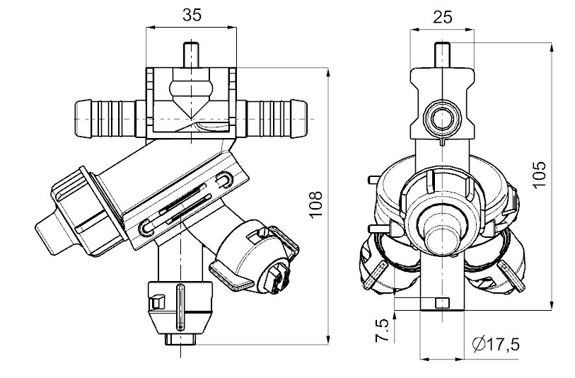 Головка (форсунка) тройная проходная для опрыскивателя