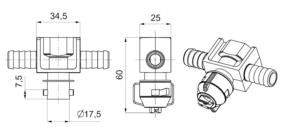 • запорным клапаном, расположенным на корпусе с боковой стороны;